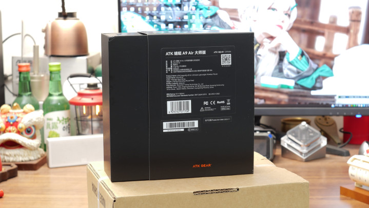 因为是ATK A9 Air群众版,在包装上就比平方的版块要豪华许多。采选的是宏构包装。鼠主见要害参数齐印刷在包装的后面。