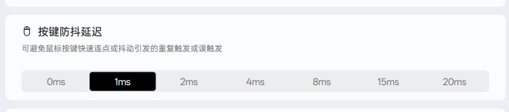 需要快速且精确地转移鼠标并点击按键,在确立中将防抖延长开到最低,默许是1ms,如果是小屏幕,防抖相貌不错要领的调高到4~8ms。