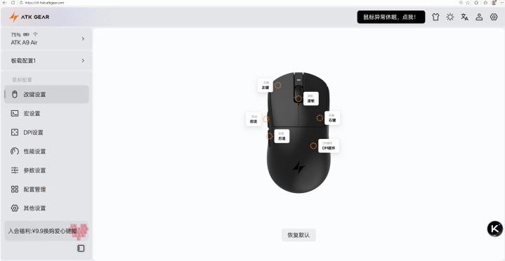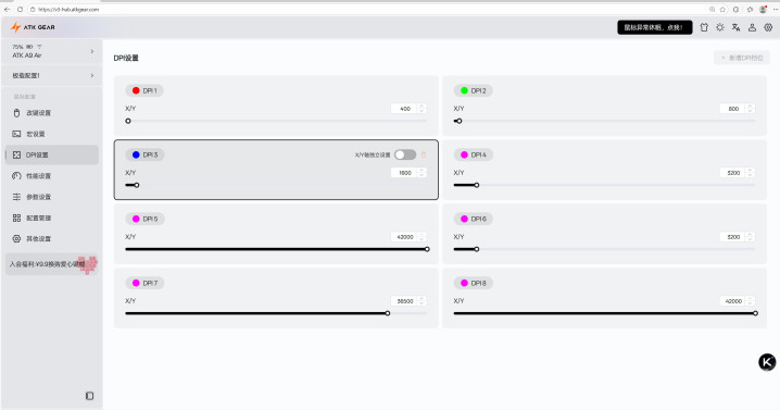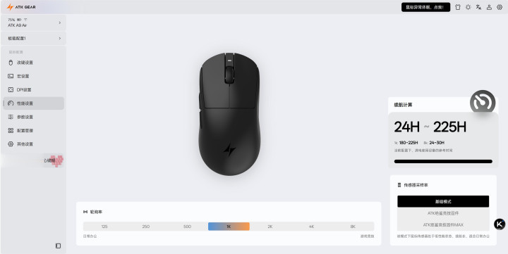 这款鼠标不需要装置额外的驱动才略,即插即用。如果需要自界说按键功能、调养轮询率或者确立鼠标DPI,也不错径直怒放ATK的驱动网页WWW.ATK. PRO,软件界面很精辟,操作也很温和,即使是电脑小白也能削弱上手。